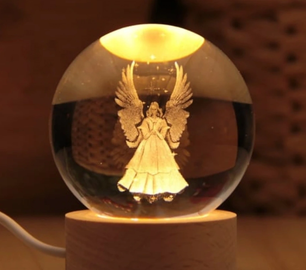 Ahşap Tabanlı Melek Tasarımlı Işıklı Cam KüreÜrün Açıklaması:Bu özel melek tasarımlı cam küre, 6 cm çapında cam ve 2 cm ahşap tabanıyla evinize huzur ve zarafet katıyor. LED ışığı sayesinde melek figürü göz alıcı bir şekilde aydınlanır ve bulunduğu ortama mistik bir hava katar. Hem dekoratif hem de anlamlı bir hediye seçeneği olarak tercih edilebilir.Boyutlar: Cam: 6 cm, Ahşap Taban: 2 cmMalzeme: Kaliteli cam ve doğal ahşap tabanÖzellikler: LED ışıklı, melek tasarım, dekoratif