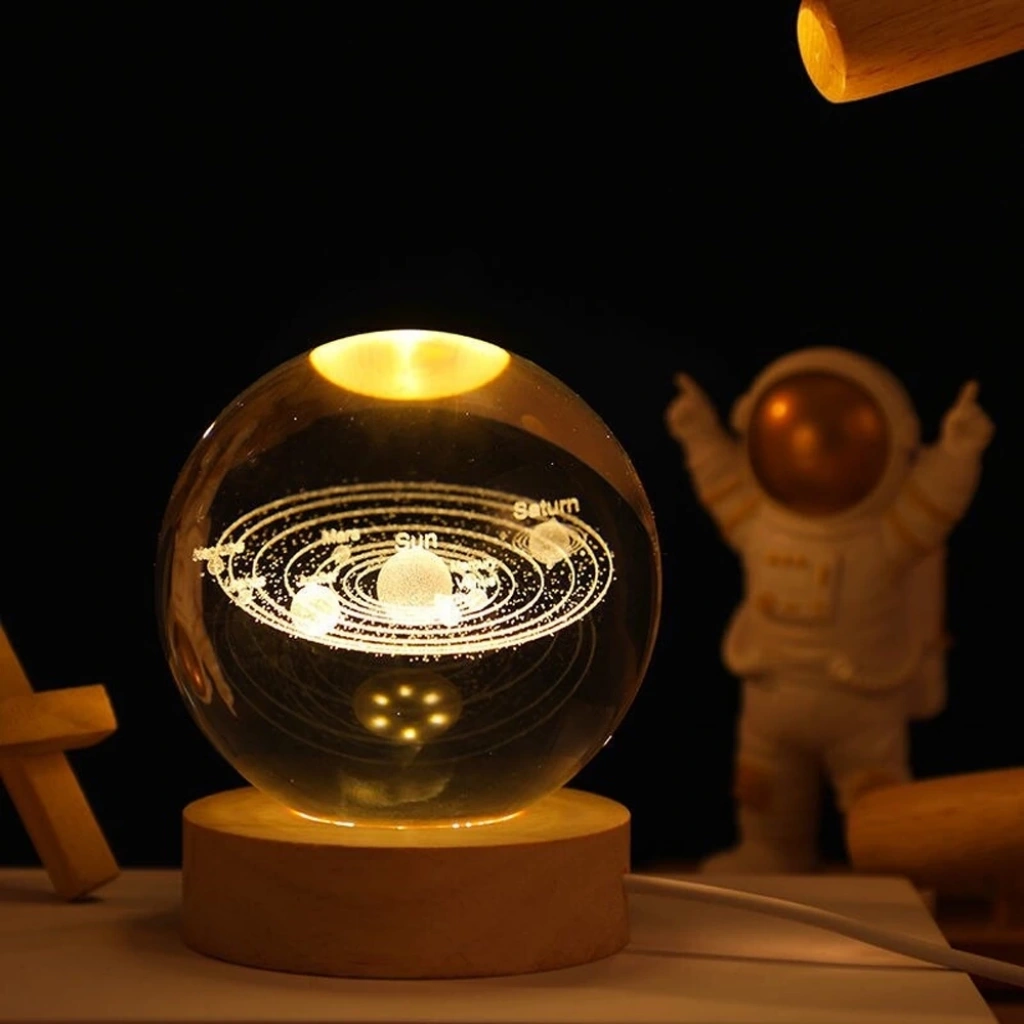 Gezegenler Temalı Ahşap Altlıklı Işıklı Cam Küre Ürün Özellikleri: